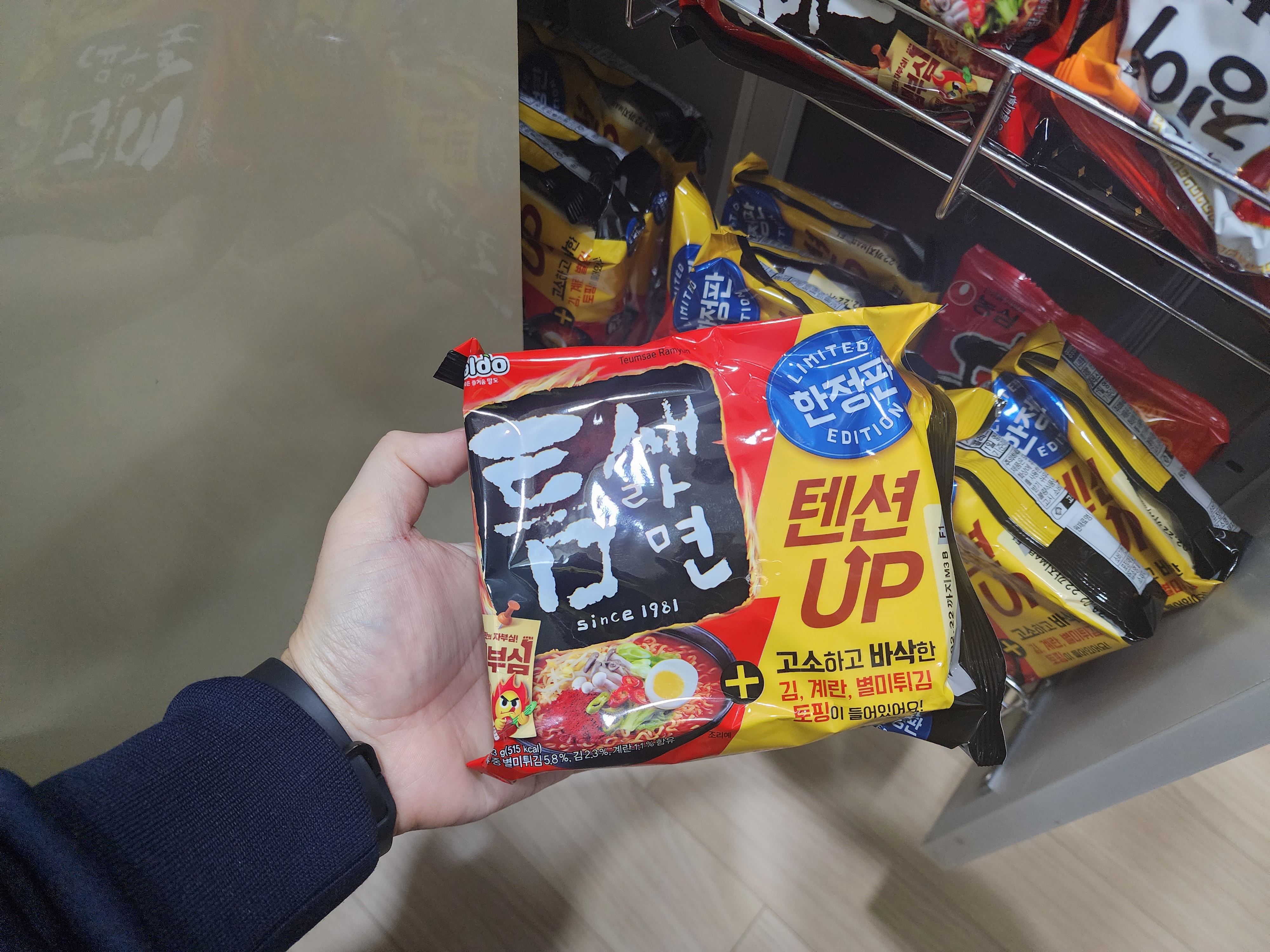 저거 스프 하나 들어있어서 한정판인건지.. 잘 안 먹는 라면이어서 모르겠음